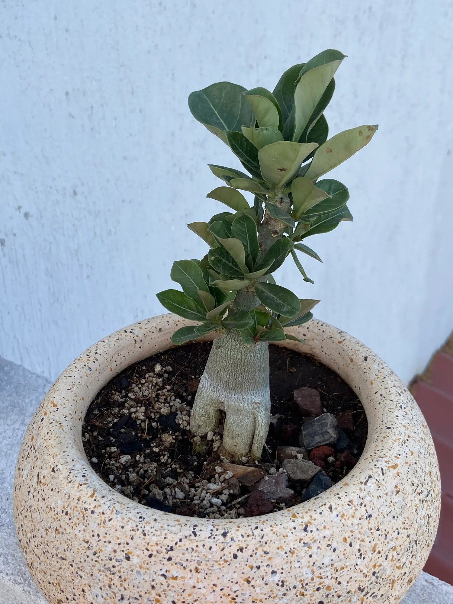 Nuestra Rosa del Desierto ‘Adenium Obesum’ te cautivará con su impresionante caudex y floración espectacular. Proveniente de climas cálidos, esta planta suculenta es el complemento ideal para los amantes de lo exótico y lo resistente.