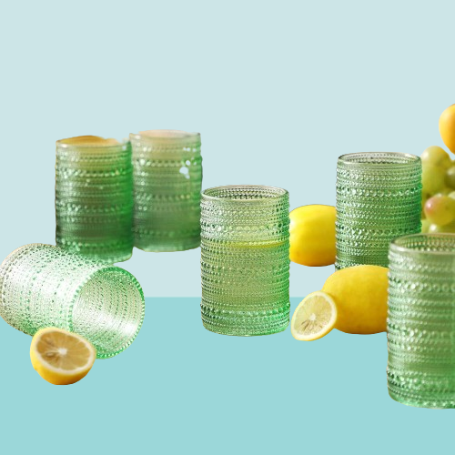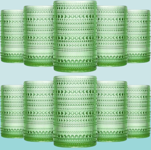 Elegante diseño retro: nuestros vasos de agua vintage de hobnail están diseñados en color verde romántico y de ensueño el diseño distintivo en relieve hace que sean fáciles de agarrar y el aspecto de estilo retro los convierte en hermosas decoraciones en la mesa lo que te brinda una agradable experiencia visual
