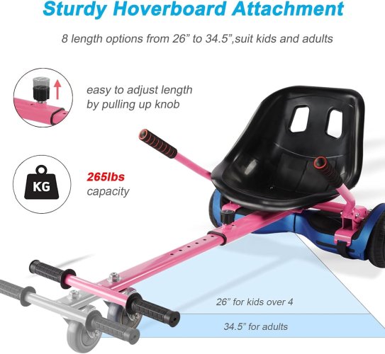 Marco sólido: con tubos de acero refinado de 0.047 pulgadas de grosor accesorio de asiento de aeropatineta que soporta hasta 265 libras y longitud ajustable de 26 a 34.5 pulgadas se adapta a niños y adultos para jugar y crecer con niños.