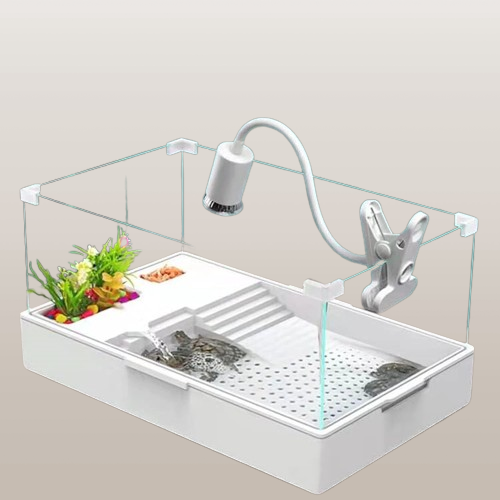 Área multifuncional: el tanque de tortugas divide diferentes áreas funcionales de acuerdo con los hábitos de vida de los reptiles con 5 zonas: zona antideslizante de arrastre plataforma de absorción zona de alimentación maceta verde extraíble y zona de natación para satisfacer las diferentes necesidades de las mascotas. Y la maceta verde multiusos puedes hacer una variedad de paisajes pero también para tu incubación de tortuga o hibernación.