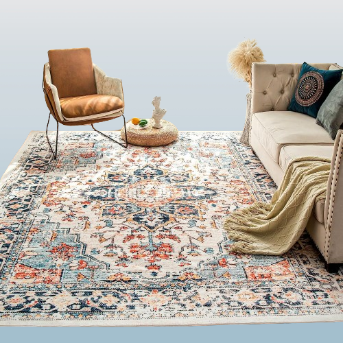 Alfombra lavable a máquina de 5 x 7 pies diseño vintage