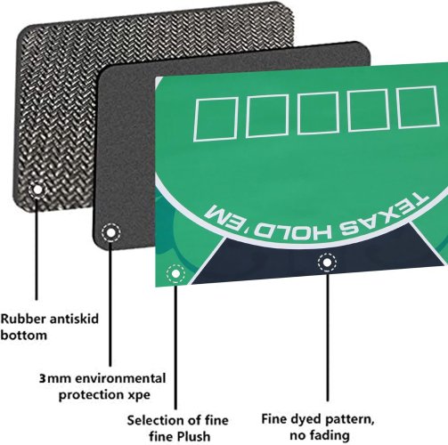 a diferencia de otras tapas de fieltro no se vuelve esponjoso esta alfombrilla de diseño de juego se puede simplemente enrollar para guardarla y ahorrar espacio sobre una mesa de póquer. Por lo tanto es fácil para ti llevar la alfombrilla de juego con la bolsa de transporte incluida si hay una fiesta afuera o vas de campamento. Además te sentirás libre de llevarlo y disfruta de un diseño compacto.