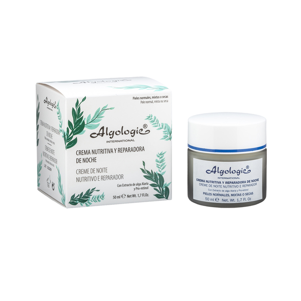 Crema nutritiva de noche para el cuidado diario de la piel. Nutre en profundidad mejorando la uniformidad de la piel del rostro. Contiene extracto de Alaria esculenta conocido por sus propiedades para aumentar la firmeza y elasticidad de la piel, y Pro-retinol, o retinol de liberación lenta, que favorece una suave y progresiva renovación celular, además de prevenir el envejecimiento prematuro de la piel. Durante el día nuestra piel está expuesta a diversos agentes nocivos, por lo que la aplicación de una crema nutritiva por la noche nos ayuda a revertir todas esas agresiones sufridas en el día, además de contribuir a mejorar el aspecto y estado de la piel