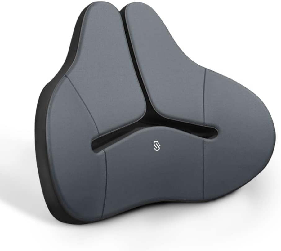 3. Kit de cojín de respaldo y reposacabezas de apoyo lumbar para coche. Aumenta la seguridad de tu conducción: mantener y dar forma a la posición sentada equilibrando las fuerzas externas es esencial para evitar lesiones durante el frenado de emergencia o para evitar la tensión muscular lumbar crónica durante la conducción de larga distancia.