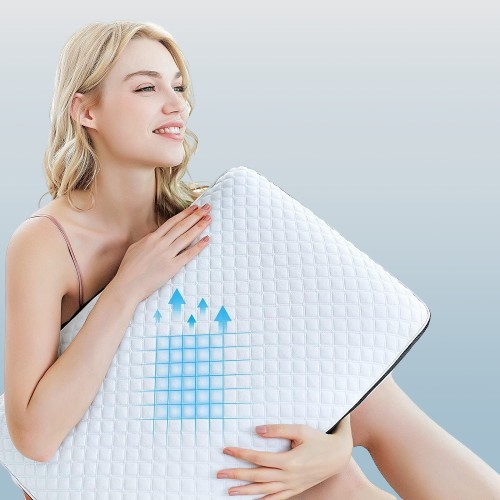 El mejor sueño que jamás tendrás: estás dando vueltas te duele el cuello y simplemente no puedes mantenerte frío o fresco con tu almohada ordinaria ¡nunca más con esta increíble almohada ortopédica especial de CushionCare! Nuestra revolucionaria almohada de cama patentada de primera calidad tiene un núcleo de espuma viscoelástica ventilada y una almohadilla de gel refrescante extraíble y está diseñada para combatir todas las razones por las que nunca duermes completas desde eliminar puntos de presión dolorosos y dolores de cabeza hasta ayudar a reducir los ronquidos