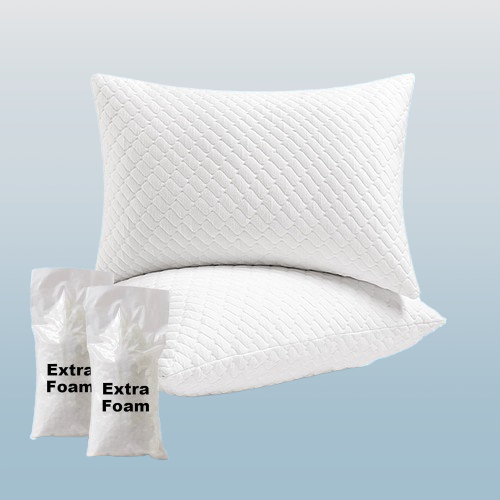 los bordes reforzados de 2 pulgadas aumentan la altura interna de la almohada requieren más relleno que una almohada normal para lograr la plenitud ideal ideal para personas que duermen de lado y para usar como apoyo. Paquete de 2 almohadas Queen rellenas de espuma viscoelástica triturada de rebote lento de alta calidad mezclada con microfibra proporciones precisas para lograr el equilibrio perfecto entre apoyo y suavidad después de varios experimentos.