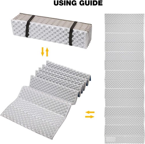 Diseño plegable: la almohadilla de dormir de espuma para acampar cuenta con diseño de forma de maní y diseño de estilo acordeón. Los picos y los valles trabajan juntos para reforzar la capacidad de soporte y atrapar el anidar uno a otro en el interior para ahorrar espacio cuando se embalan