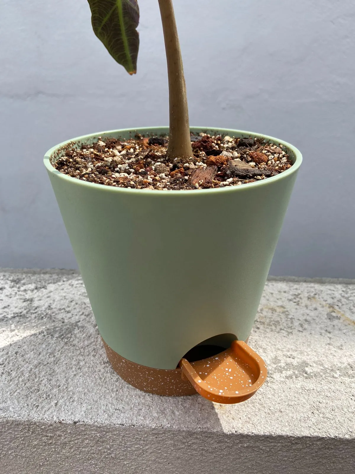 Transforma tu espacio en un oasis tranquilo con nuestro macetero de autorriego, el compañero perfecto para tu Planta Máscara Africana (Alocasia). 🌿 Este innovador macetero, elaborado con materiales de alta calidad, no solo presume de un diseño elegante y minimalista que complementa cualquier decoración, sino que también cuenta con un práctico sistema de autorriego para hacer el cuidado de las plantas pan comido.