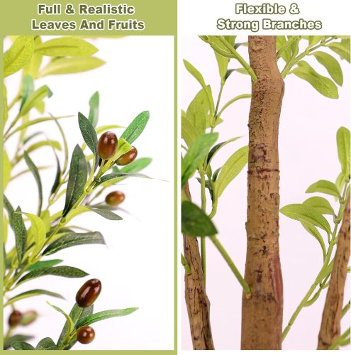 El olivo artificial para interiores es perfecto para familias ocupadas que quieren la belleza natural de los árboles de hoja perenne en su hogar. Ya no tendrás que preocuparte por tratar de encontrar un lugar cerca de una ventana o mantener las plantas al aire libre en invierno. Como árbol falso cuenta con la misma apariencia realista de un olivo real.