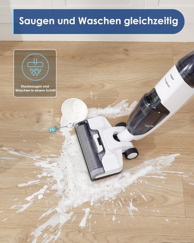 ASPIRAR Y MOPAR EN UN PASO: Aspirar y limpiar los pisos al mismo tiempo. Limpia fácilmente la suciedad húmeda y seca los suelos se secan rápidamente y sin manchas. Neakasa proporcionará un entorno de bajo ruido de menos de 76 dB durante el proceso de trabajo.