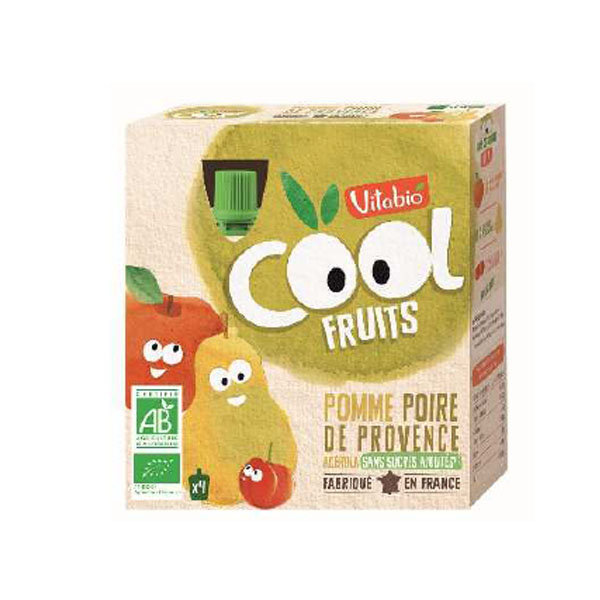 La Bolsita Cool Fruits Manzana-Pera de Vitabio es un puré de frutas que alía la dulzura del puré de pera provenzal con la delicadeza del puré de manzana en una práctico empaque ideal para llevar y disfrutar en cualquier momento del día.
