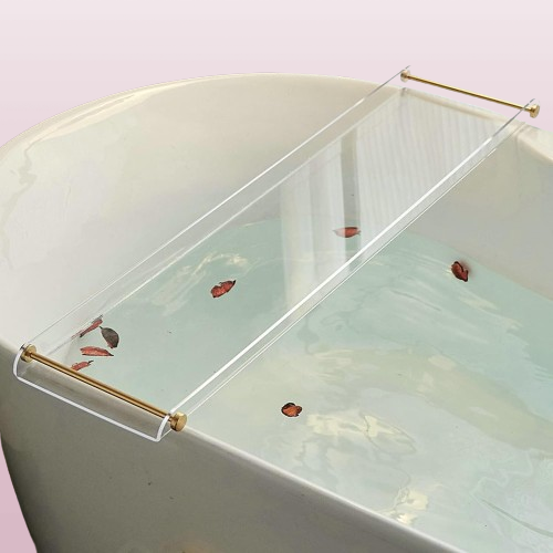 Bandeja de bañera de acrílico con mango dorado