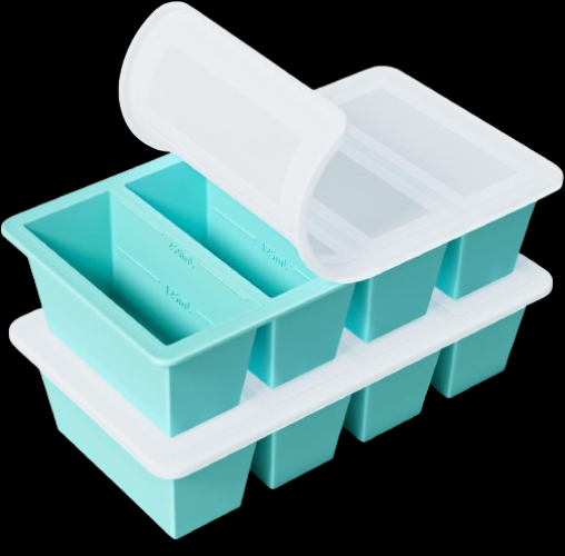 Cada cavidad tiene las medidas de ½ taza 1 taza 4.2 fl oz y 8.5 fl oz marcadas en el interior. Esta es una forma ordenada de congelar en porciones de tamaño preciso. La bandeja congelador de cubos de sopa es perfecta para cocinar por lotes y tener las sobras congeladas para su uso posterior. Los recipientes para sopa congelador son imprescindibles para cualquier persona que cocine por lotes sopa o caldo.Las bandejas de silicona para congelador con tapa están diseñadas con un marco interno de acero inoxidable para mayor estabilidad. La bandeja de súper cubos no se inclina incluso si la bandeja de silicona para congelador está llena cuando se mueve o apila. La bandeja para cubitos de hielo de sopa se puede anidar una dentro de la otra cuando no están en uso.
