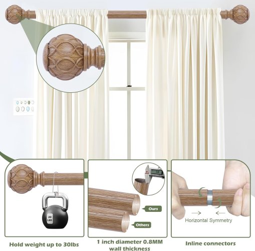 Barras de cortina de madera de 28 a 48 pulgadas
