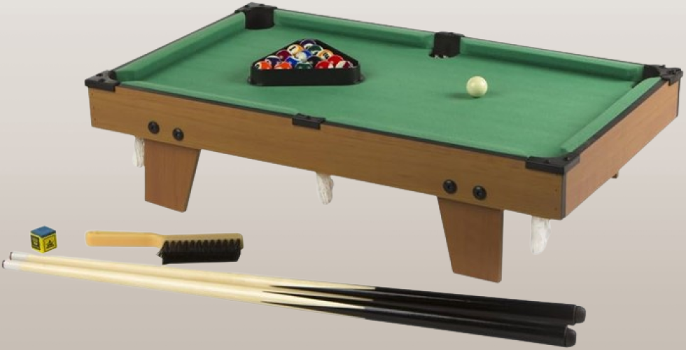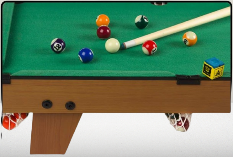 El billar de sobremesa con estructura de madera mide 62x36x15 cm