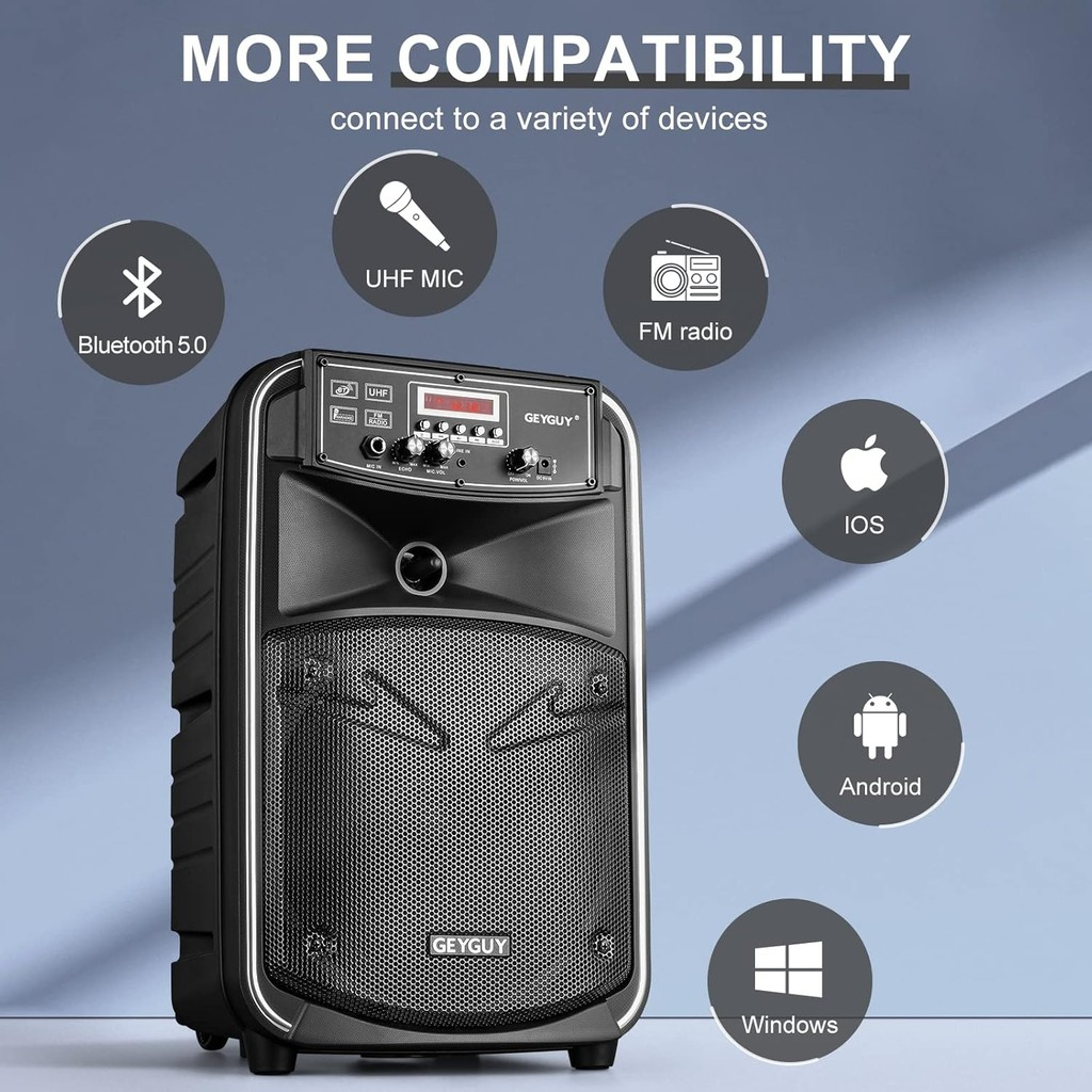 - Potencia recargable – Subwoofer de 8 pulgadas: experimenta graves profundos y dinámicos y agudos cristalinos con el subwoofer de 8 pulgadas y el combo de tweeter de 3.5 pulgadas. Perfecto para fiestas al aire libre, noches de karaoke, eventos en vivo o reuniones en el patio trasero, este altavoz portátil Bluetooth PA ofrece un sonido potente y sin distorsiones dondequiera que la música te lleve.
