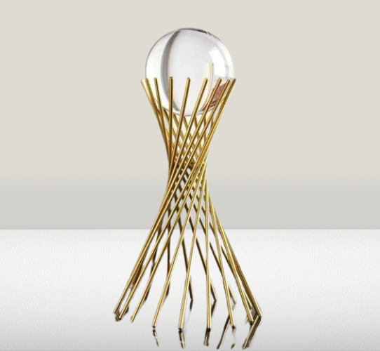 Bola de cristal de arte abstracto moderno 3D con soporte de hierro dorado