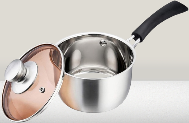 Cacerola de acero inoxidable cepillado con tapa. Capacidad 1/4 de galón