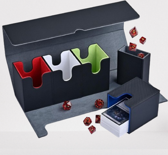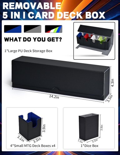 Más fácil de usar: este juego de cajas de almacenamiento de tarjetas es lo suficientemente grande como para adaptarse a tres mazos de comandante con mangas más algunos dados o algunas tarjetas laterales para intercambiar. Cada caja individual puede caber 80 cartas de doble manga fácilmente. Esta es una excelente manera de llevar múltiples mazos junto con dados y fichas a cualquier noche de juego de cartas. Ten en cuenta que funciona con tarjetas de doble manga y de una sola manga pero no con fundas de carga superior.