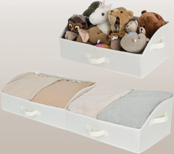 【Uso múltiple】 Estos cubos de caja de almacenamiento con tapa abatible son adecuados para almacenar desde cosas pequeñas como libros juguetes toallas artes papelería ropa interior ropa y manualidades hasta cosas grandes como mantas sábanas edredones etc. desde esa caja su habitación puede volverse más ordenada y limpia.