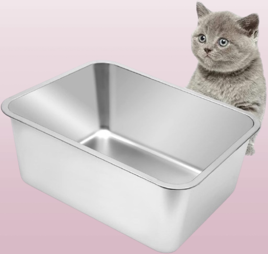La caja de arena para gatos está hecha de acero inoxidable que es resistente a la corrosión y súper duradera