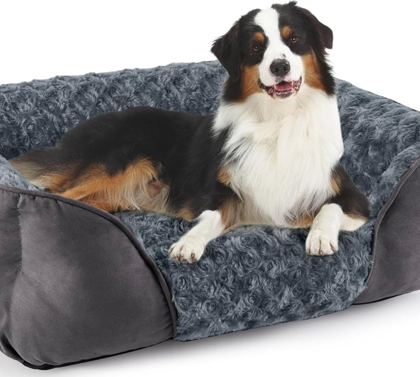 la cama para perro está diseñada con una parte superior de sherpa de felpa de lujo y una parte inferior antideslizante proporcionando comodidad adicional para que los perros duerman cómodamente.