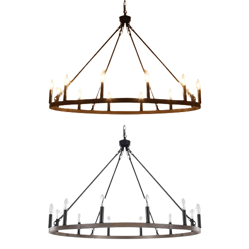 Alta calidad: hecho de metal de hierro de alta calidad lacado negro en su superficie y marco de luz de imitación de madera lo que lo hace más hermoso estos grandes candelabros para techos altos son antioxidantes no se decoloran y son fáciles de limpiar y se pueden utilizar durante muchos años. Además nuestros enchufes y cables de lámpara están certificados por UL que pueden garantizar la seguridad del producto.