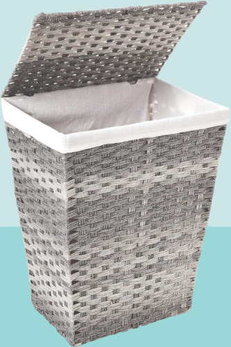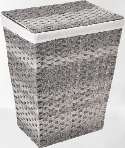 Cesto para ropa sucia con forro y tapa color gris lavado