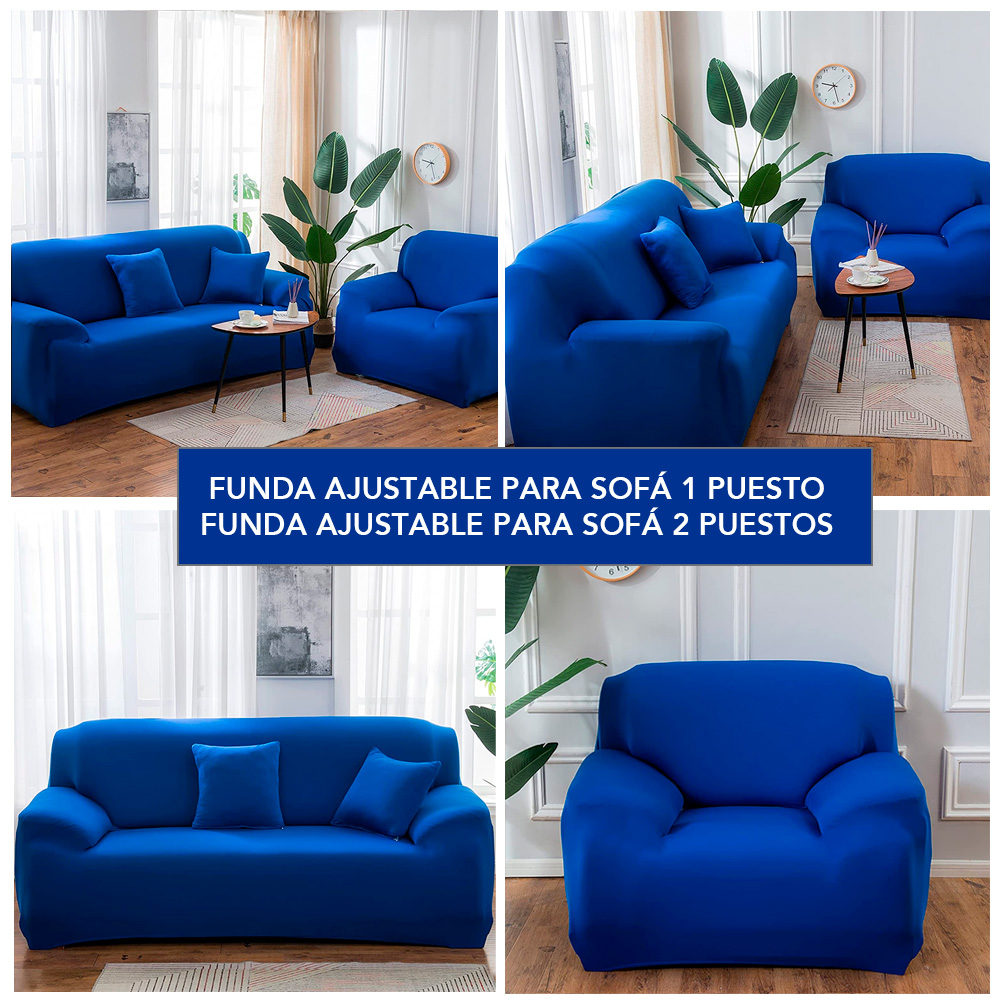 Combo Funda Ajustable Azul Rey para Sofá de 1 Puesto + Funda para Sofá de 2 Puestos