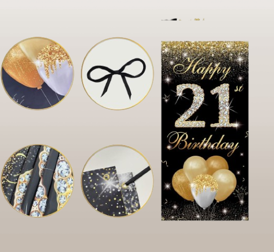 Decoraciones de calidad para cumpleaños número 21: los kits de cumpleaños número 21 para niños y niñas están hechos de material premium seguro y ecológico: un conjunto de pancarta de cumpleaños reciclable globos gruesos de larga duración una cortina dorada como telón de fondo brillante y una banda para indicar que se acerca tu importante cumpleaños número 21.