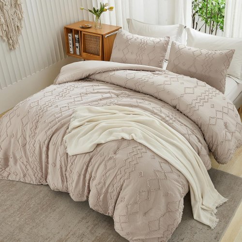 Edredon acolchado bohemio y de color caqui de Andency Tamaño King.