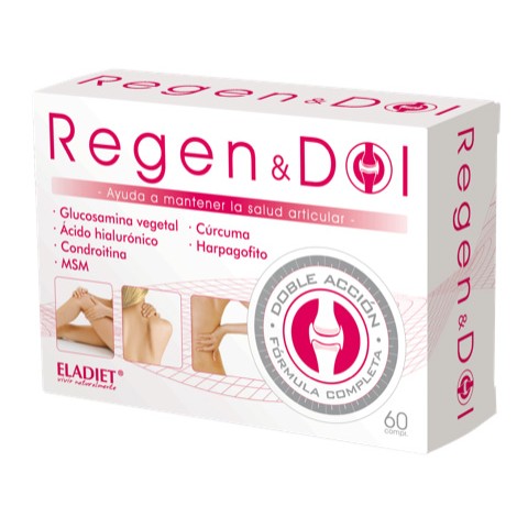 Regen&Dol de Eladiet es un complemento alimenticio completo y de primera calidad, con recomendaciones médicas y científicas. Esta fórmula única de ingredientes naturales es ideal para aquellas personas que tienen problemas relacionados con articulaciones y quieren mantener una buena salud y movilidad articular, además de reducir el dolor y mejorar la elasticidad de los tejidos.