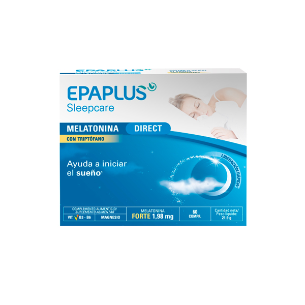 Con el objetivo de ayudarte a recuperar un sueño saludable, Epaplus ha desarrollado su Melatonina Direct con Triptófano, un complemento alimenticio que combina ambos ingredientes para proporcionar un efecto sedante, relajante y regulador del sueño de forma natural y sin efectos secundarios.