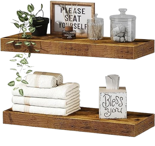 Más profundidad: 6.7 pulgadas de profundidad x 15.7 pulgadas de ancho x 1.5 pulgadas de alto. 6.7 pulgadas de profundidad adecuada para libros cestas papel higiénico o toallas de baño. Contiene 2 estantes perfectos para espacios pequeños y combinación de libertad