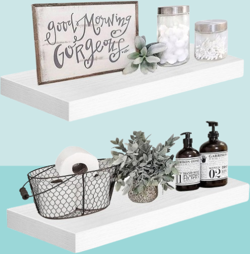 Estos elegantes estantes se ven rústicos pero modernos son una gran adición si necesitas espacio de almacenamiento adicional o si quieres añadir un toque de decoración.