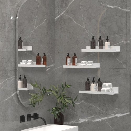 Estantes flotantes con borde: el estante con repisa es práctico y hermoso. El diseño en forma de U y el diseño de deflector de 0.6 pulgadas pueden evitar que los artículos se resbalen.