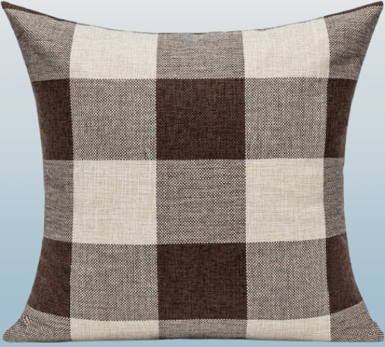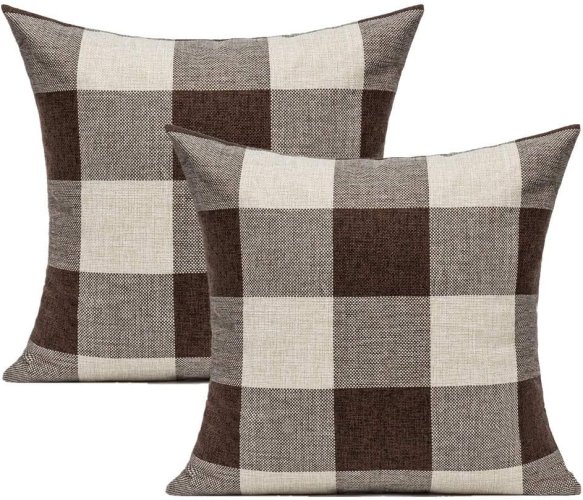 Juego de 2 fundas de almohada cuadradas de lino de algodón a cuadros marrón beige para decoración del hogar
