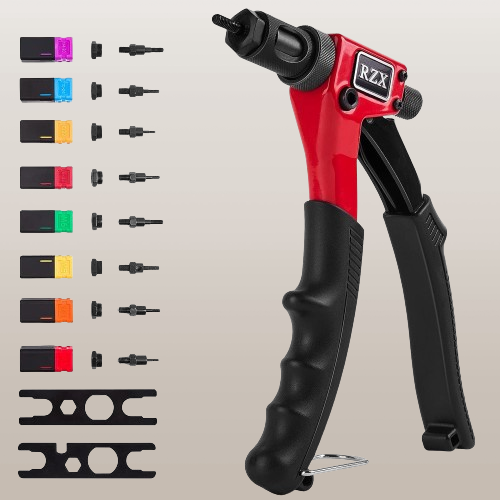 Mangos ergonómicos con bisagras de doble compuesto que maximizan el apalancamiento y para una fácil operación. La remachadora manual resistente de forma delicada es ideal para trabajar en áreas de difícil acceso. Ideal para modificaciones todoterreno o Jeep
