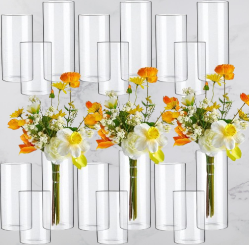 Información de tamaño: el jarrón cilíndrico de vidrio más grande mide aproximadamente 12 x 3.5 pulgadas el mediano que se puede colocar en salas de exposiciones de banquetes centros de mesa de boda o mesas de comedor en casa y puedes llenarlo con líquido piedras preciosas o pétalos de rosa para decorar