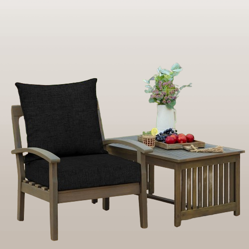 el tamaño de los cojines para exteriores es de 18 x 18 x 3 pulgadas. La tela teñida con solución SAMTY se utiliza para garantizar que cada fibra esté profundamente teñida y puede mantener la vitalidad incluso después de un uso extenso y puede soportar 1500 horas de resistencia a la decoloración UV.