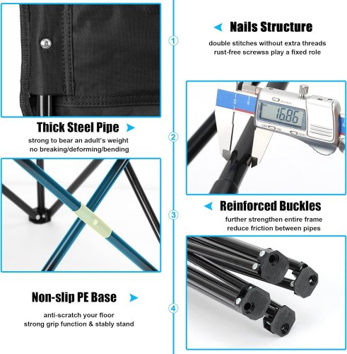Sillas plegables: el juego de 2 sillas se puede plegar y guardar fácilmente para ahorrar espacio o transportarse lo que hace que este juego sea perfecto para acampar o un día en la playa.