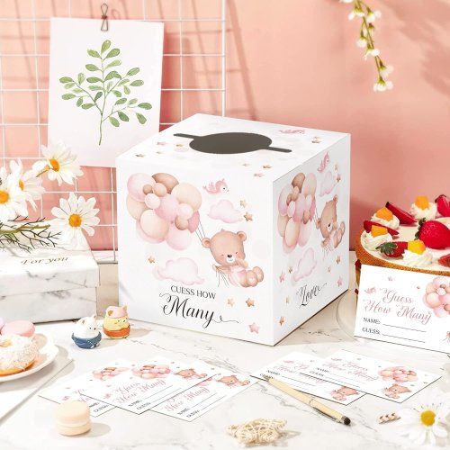 Recibirás 1 caja de tarjetas de cubo (7.48 x 7.48 x 7.48 pulgadas) y 50 tarjetas de adivinanzas (4.72 x 3.14 pulgadas) suficientes tarjetas para satisfacer tus demandas y reemplazo la caja de soporte es lo suficientemente grande como para sostener estas tarjetas para decorar tu fiesta de baby shower.