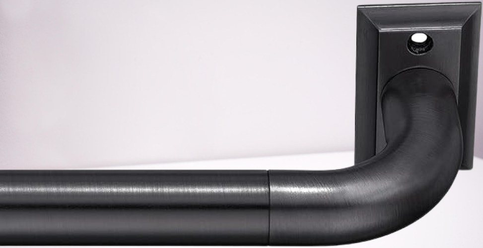 la barra de cortina opaca de la colección MODE para oscurecer la habitación tiene soportes en forma de codo y elegantes placas traseras rectangulares para bloquear eficazmente la luz. Un equipo dedicado de diseñadores utilizó las últimas tendencias de diseño para crear este toque final de transición.