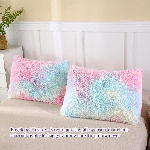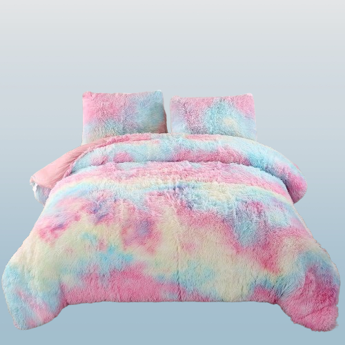 Tamaño individual: 1 edredón de piel sintética de color pastel teñido anudado degradado (con inserto) de 68 x 86 pulgadas 2 fundas de almohada peludas de 20 x 26 pulgadas.