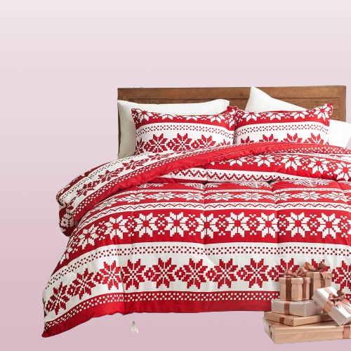 Juego de edredon rojo de Navidad tamano Queen con copos