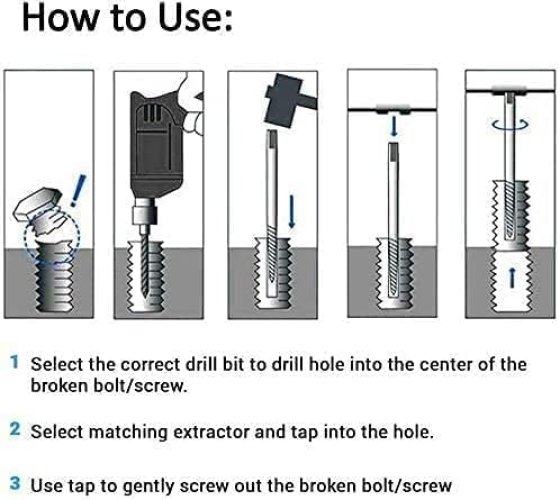 Material premium: nuestro extractor de tornillos está hecho de acero para rodamientos de alta calidad endurecido superficialmente lo que lo hace más duradero. Si tiene alguna pregunta sobre nuestros productos puede contactarnos en cualquier momento le brindaremos respuestas satisfactorias.Con caja de embalaje: 6 juegos de extractores de tornillos tamaño: 1 # / 2 # / 3 # / 4 # / 5 # / 6 # diferentes tamaños pueden eliminar perfectamente todos los daños cabezas de rosca rotas y oxidadas y pernos. Nuestro extractor de tornillos está equipado con una importante caja de almacenamiento roja. No tendrás que preocuparte por la próxima vez que no encuentres ni un solo extractor. Simplemente coloque la caja en una caja de herramientas fija.Ampliamente utilizado: puede ser ampliamente utilizado en el mantenimiento del hogar automóviles o mantenimiento mecánico. Se aplica a la mayoría de los ladrillos rotos almacenados en el mercado y se ha aplicado a la mayoría de los mandriles universales eléctricos giratorios a mano.Ahorra dinero: Prácticos destornilladores y kits de extracción que se pueden colocar en el garaje o en la caja de herramientas. Es una herramienta de reparación imprescindible para cada familia. Cuando la familia necesita arreglar algunas cosas se puede usar directamente en lugar de ir a un costoso taller de reparación.