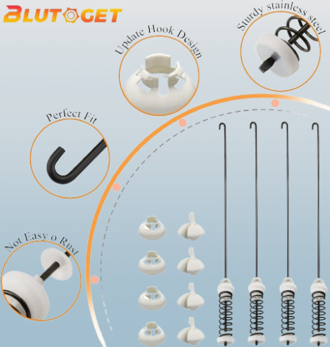 Detalles del producto: la barra de suspensión W10780048 incluye 4 juegos de varillas de suspensión y 4 bolas de suspensión y 4 carcasas de bola de suspensión. La longitud es de 23.6 pulgadas. La barra de suspensión W10780048 puede reparar los síntomas de sacudidas y movimiento y ruido. Reduzca la vibración y el equilibrio de la lavadora durante el funcionamiento