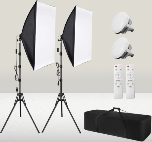 2 unidades caja de luz de 20 x 28 pulgadas 2 unidades bombilla LED súper brillante de 4250 lm y 50 W [2 piezas] soporte de luz de 78 pulgadas / [2 unidades] práctica bolsa de transporte