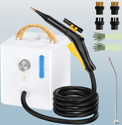 Herramienta de limpieza multiusos: el vaporizador portátil AUXCO es perfecto para hacer frente a los desastres de la cocina la limpieza del baño el mantenimiento del piso el rejuvenecimiento de lechada y azulejos y la frescura de alfombras. Además es tu mejor opción para los detalles del automóvil ahorrándote el gasto de lavados frecuentes de autos.Potente limpieza a vapor de 2500 W