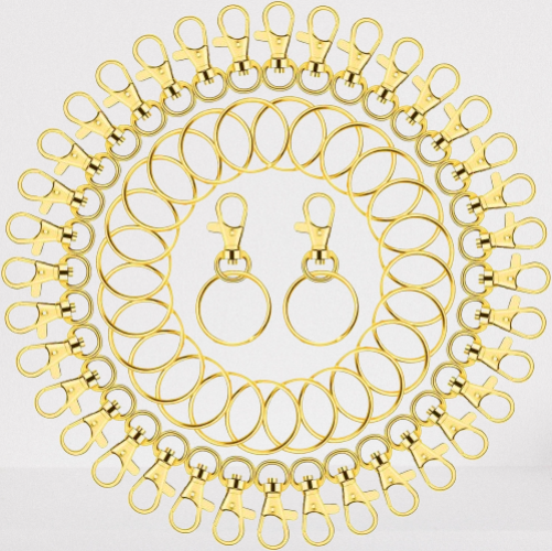 Llaveros dorados para manualidades incluye 50 ganchos para llavero y 50 llaveros.